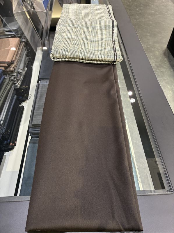 ちなみにこれらのジャケット生地のお値段は(茶とグリーンどちらも)