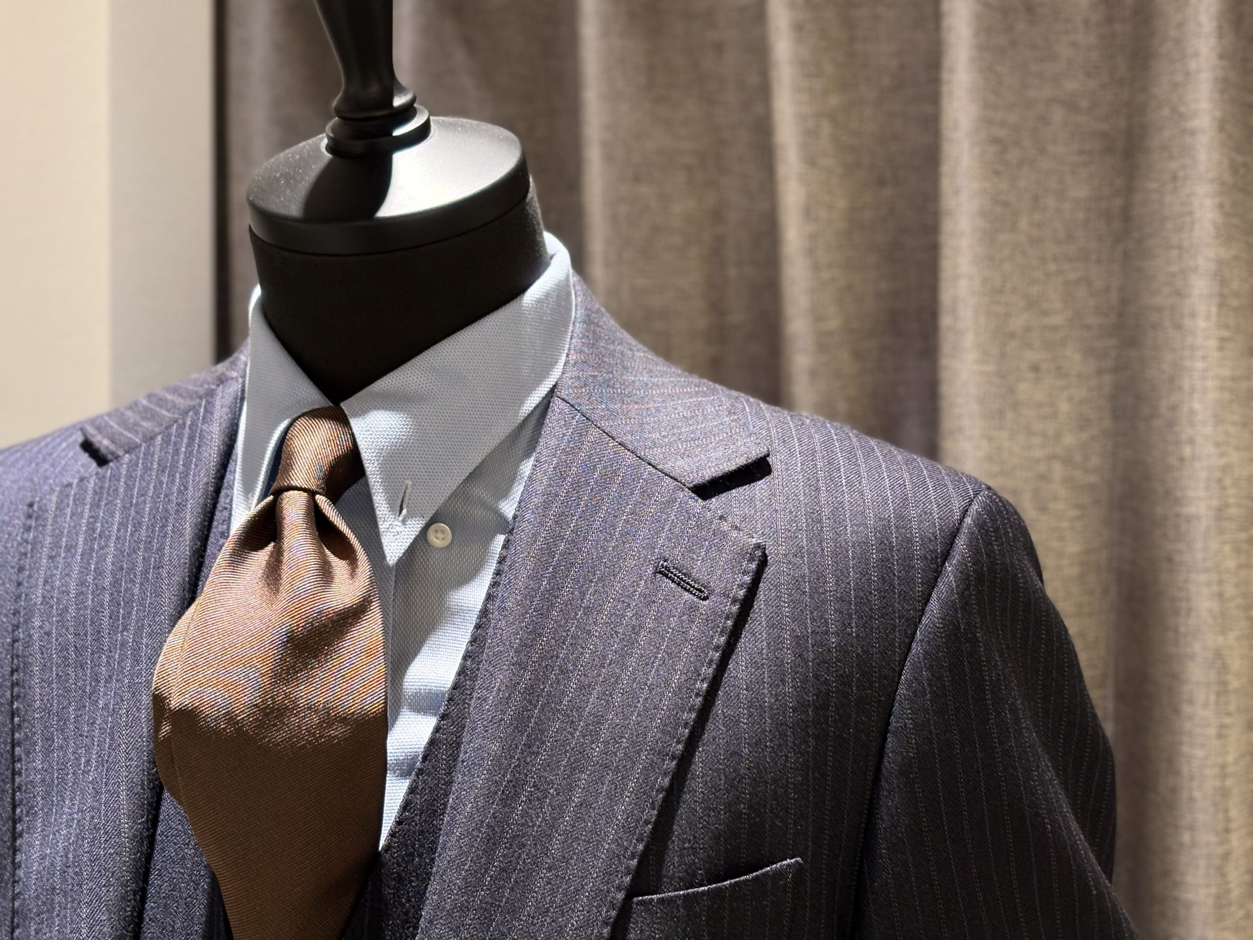 セパレートでも可ですが、スーツで着用した方が間違いなく格好いいです!