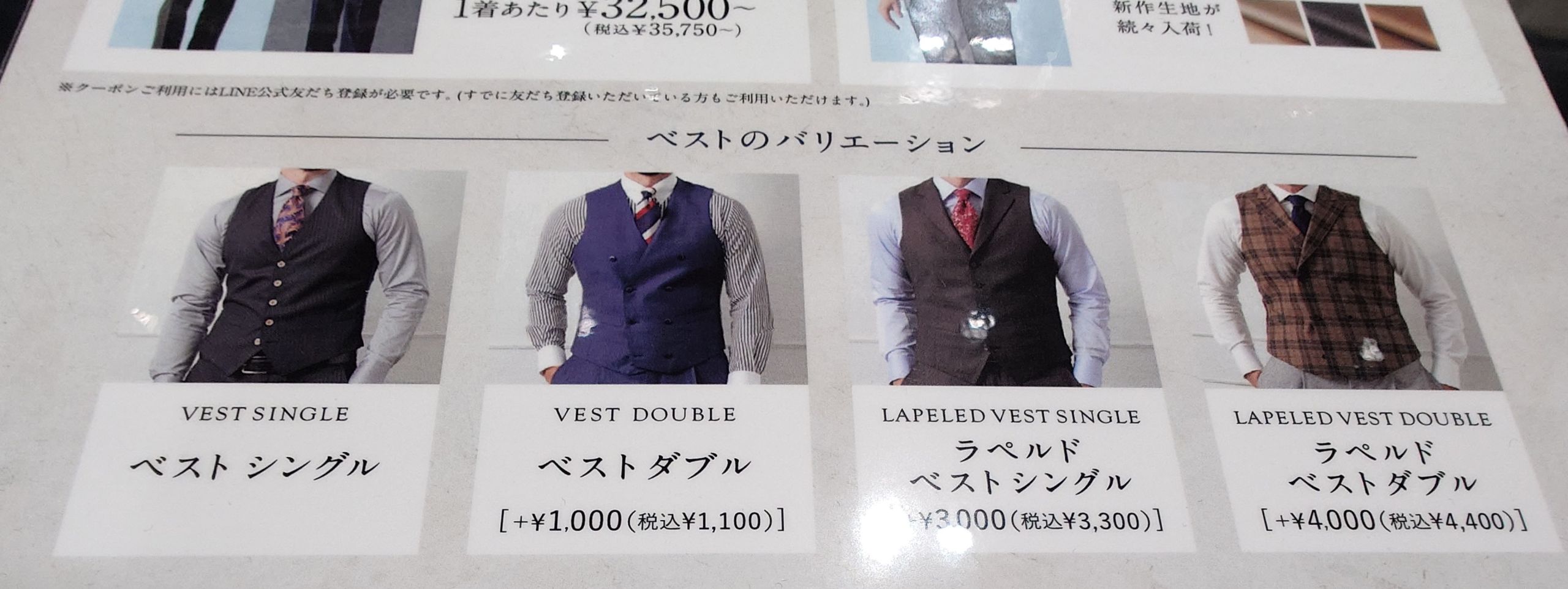 既製品だとベストが付いてないものも多いですし、なかなか丈や幅も合いにくいです。