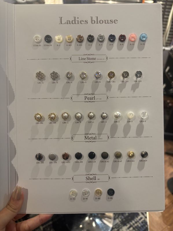 アクセサリー釦でアクセントをつけるのも良いですし、