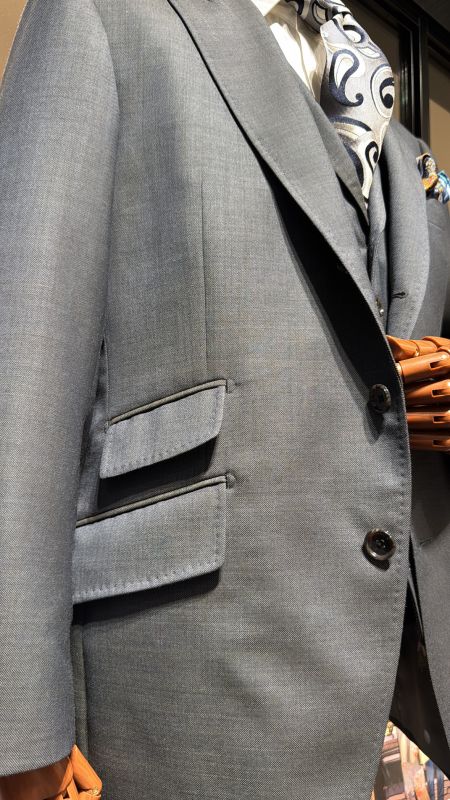 *今回のスーツはポケットが斜め (スラントポケット) の仕様になっている