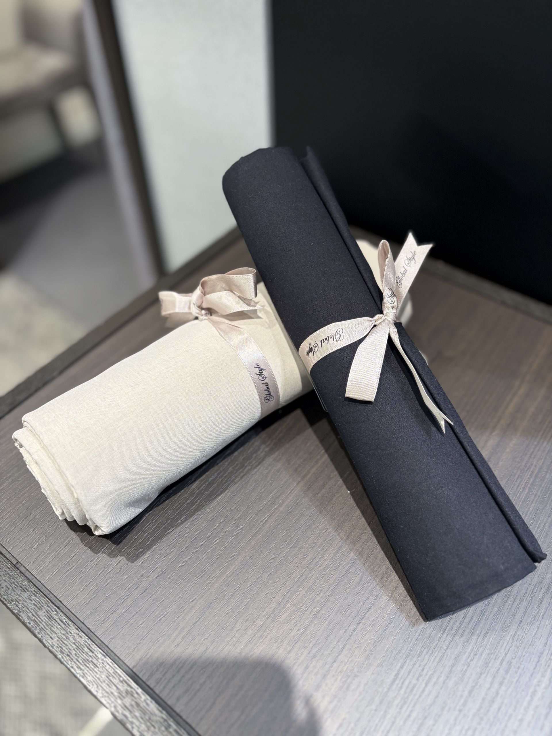 ほぼ白に近いベージュ色の生地とブラックの生地です