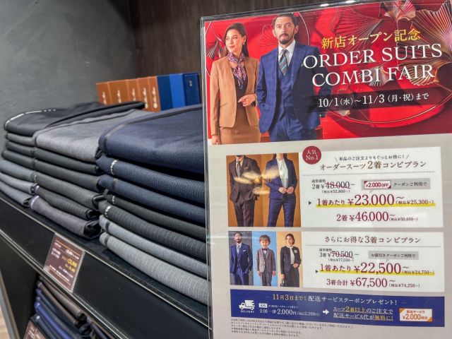 スーツを2着以上で買っていただくと、¥2,000引!+配送料(¥2,000)無料!