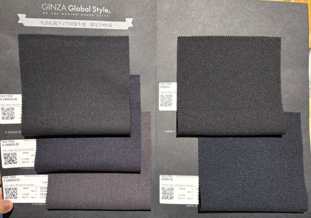 店頭に並んでいる生地とご案内するジャケットのモデルは、前回同様です!