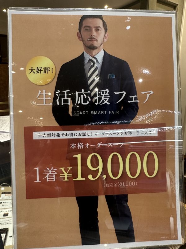 オーダースーツ1着19,000円でお仕立て頂けます!!