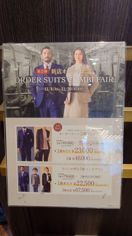 2着ご注文で2着ともコンビ価格にお値下げが入る他