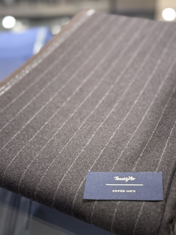 新作生地として入荷しました「ドーメル・ロイヤル12」BLKストライプです!