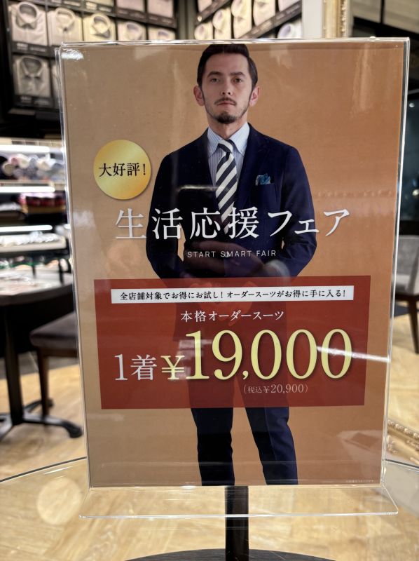 題名にもある通り、現在グローバルスタイルでは1着税抜¥19.000‐税込¥20.900‐からお仕立て頂けるフェアを開催中です。