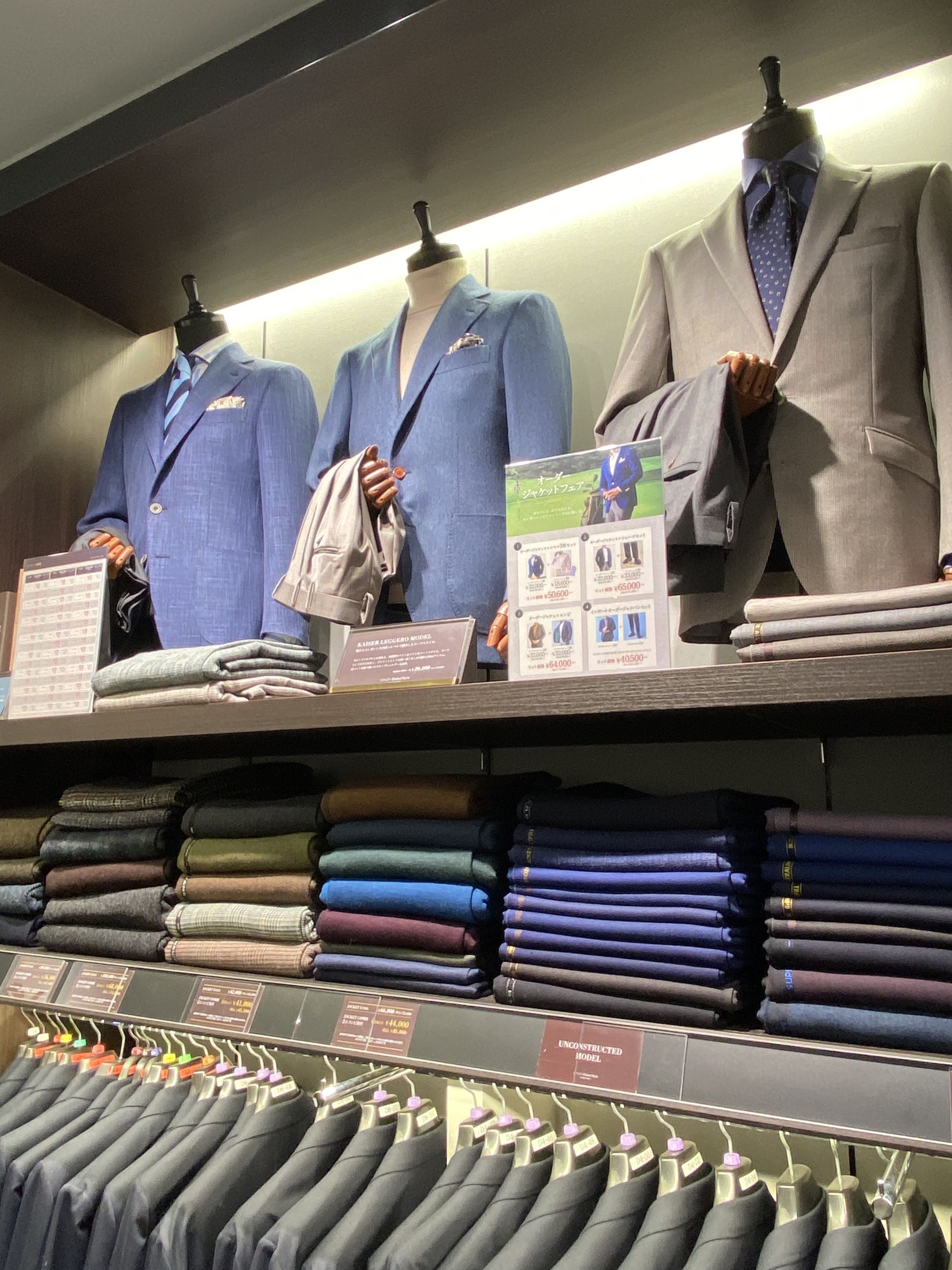店頭にはジャケット専用の生地コーナーがございます!