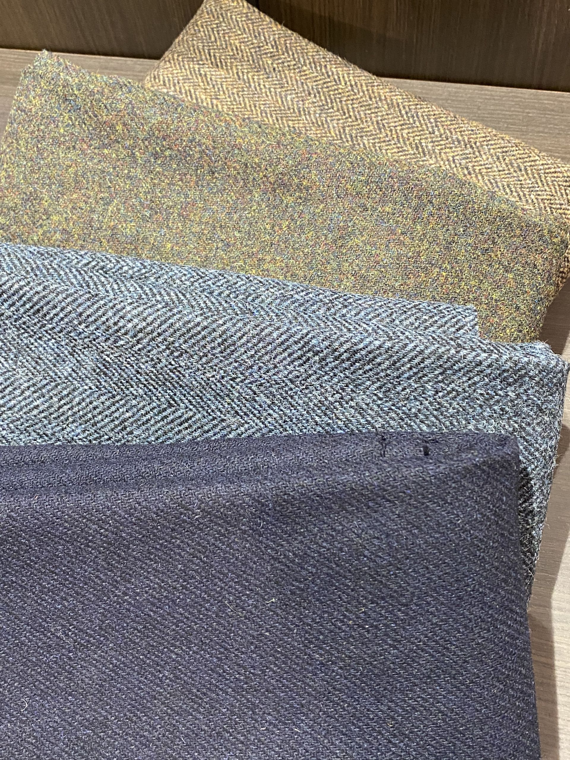 紺ブレザーが欲しくて生地迷い中なのですが手前のネイビー生地がとても素敵で気になっております…せっかく新しい裏地も入荷したので使いたいな~と思っているところです!