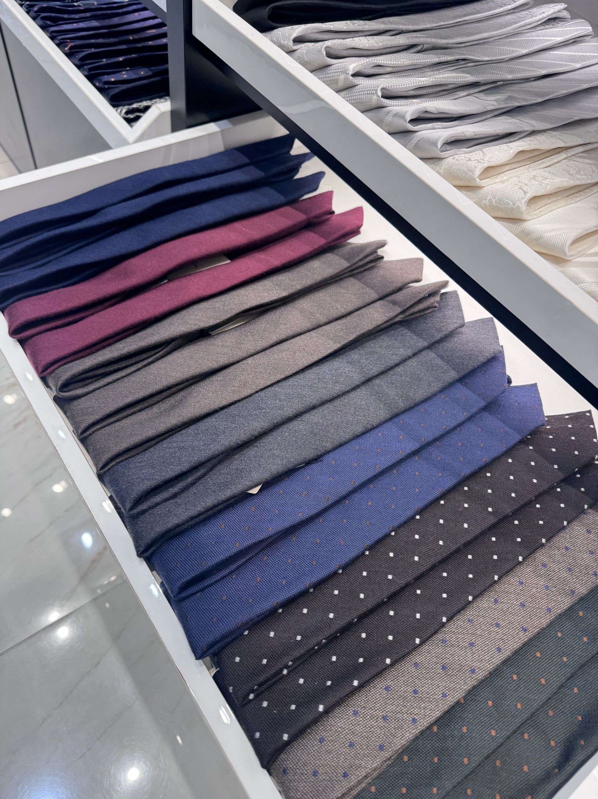 一般的なシルクのネクタイと比べ少しボリュームがある為、