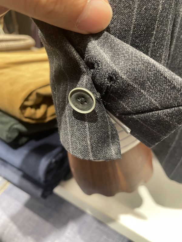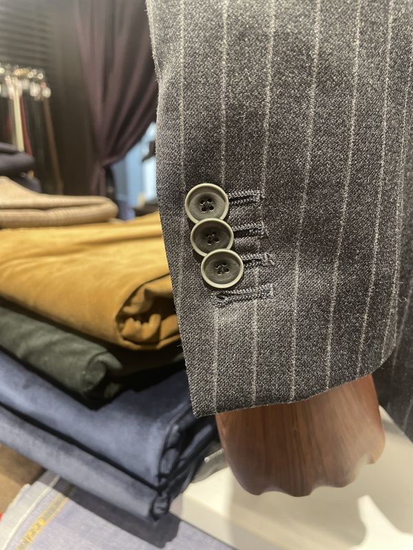 既製スーツの多くは飾り切羽ですが、オーダースーツでは本切羽を選ばれる方がとても多いです。