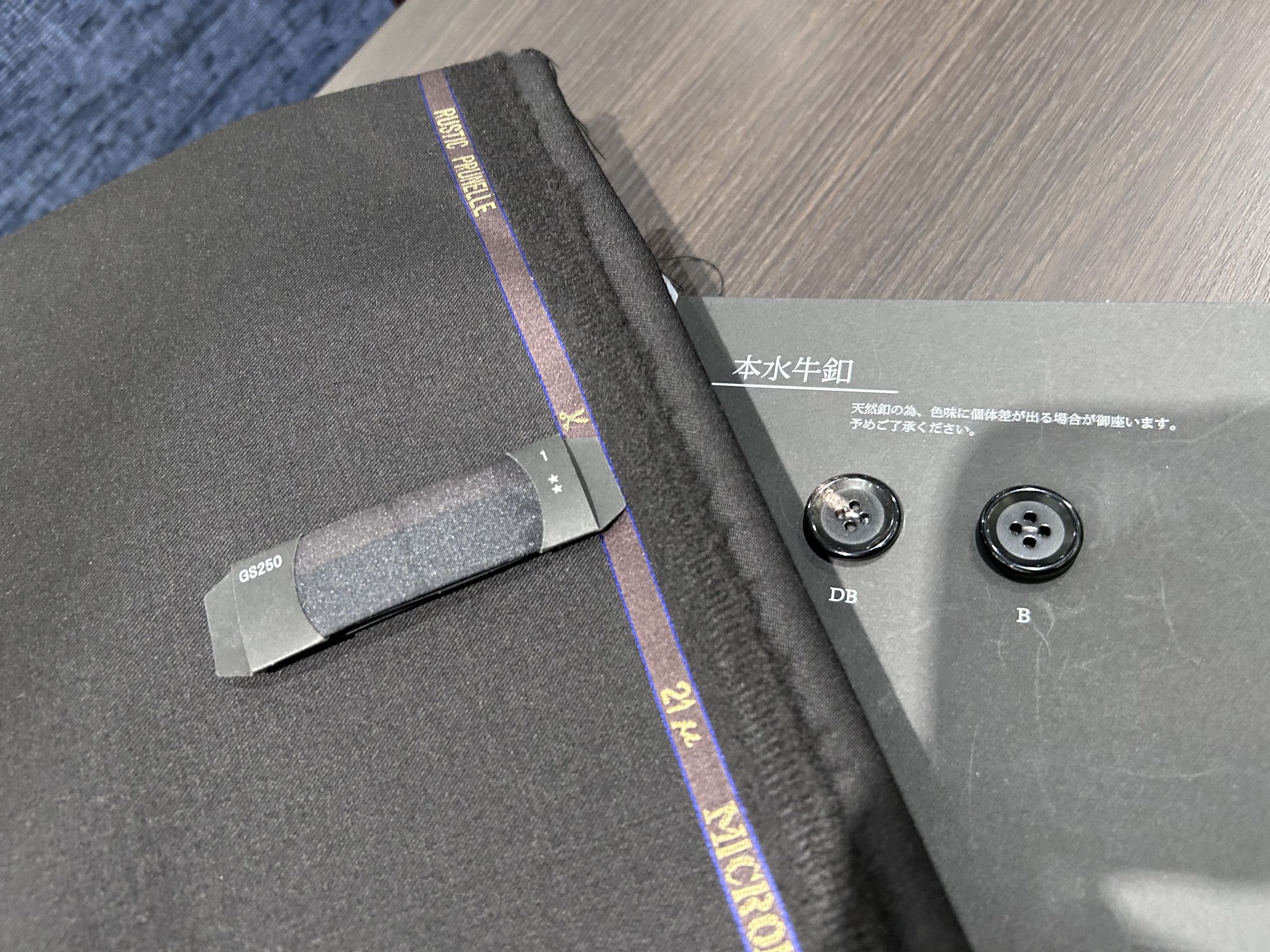 以前紹介させていただいたジャケット生地はライトグレーだったので、ダーク系でいきたいなと思っていました。