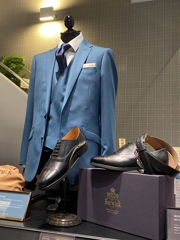 1階がメンズスーツ・ジャケット、シャツ、小物類、革靴Berwick、レディーススーツ