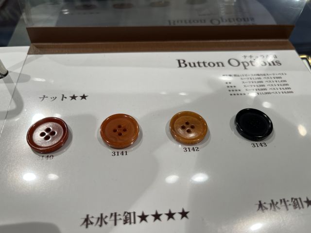 今回はスーツに合わせるボタンについてご紹介いたします。