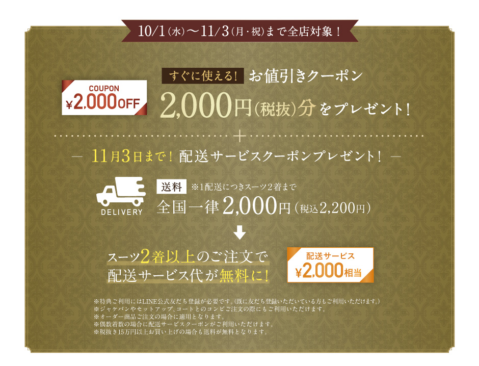 当時の価格そのままで販売している為、お得にブランドスーツをお仕立ていただけます。