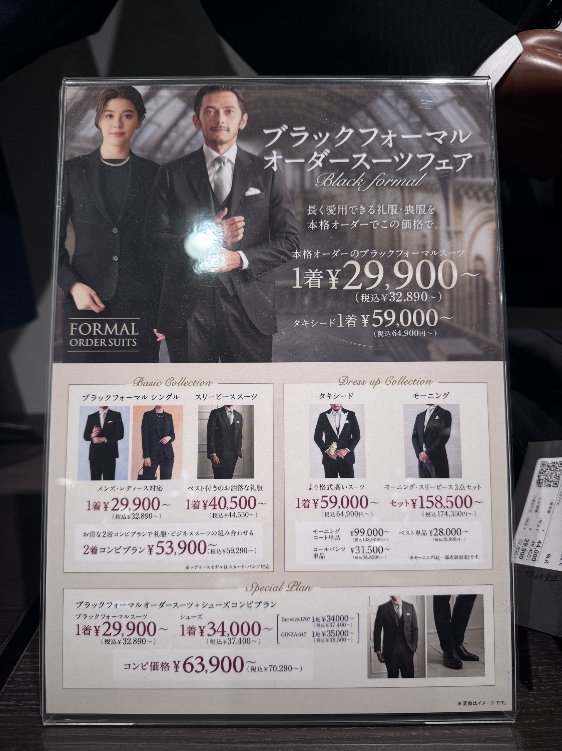 グローバルスタイルの礼服はなんと¥29,900からお仕立て可能です!