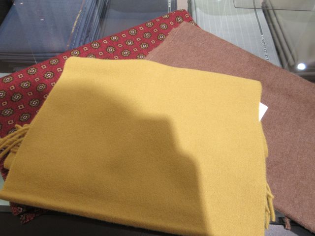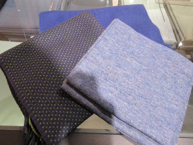 色柄など様々ございますが、スーツの色味やコートの色味に合うようなマフラーをお見せしたいと思います。