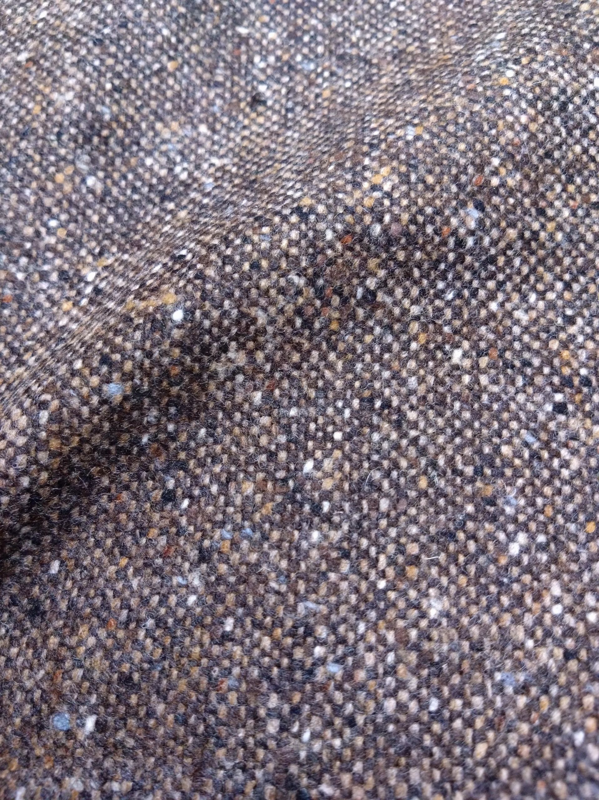 その中でも今回ご紹介するツイード生地はブラウンの生地の中にいろいろな色のネップが入っており、まるで岩や地面のような見た目になっています。