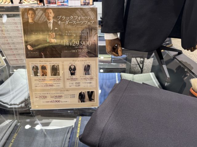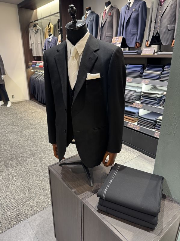 先月くらいから、価格をさらに抑えられるポリエステル100%の礼服生地を扱うようになりました。
