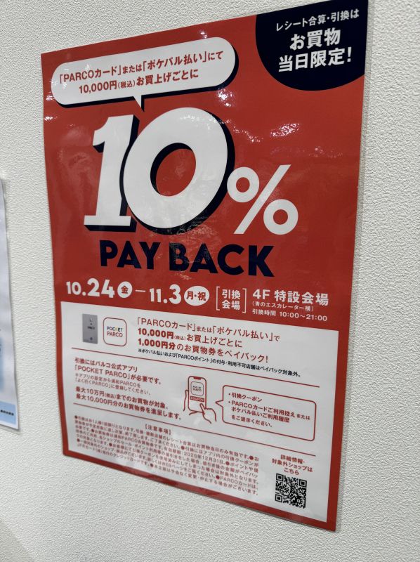 今回のブログでは、パルコで開催されている10%PAY BACKのキャンペーンについてご紹介致します。