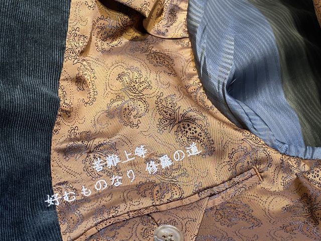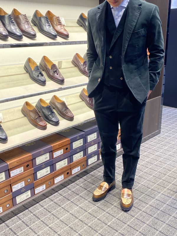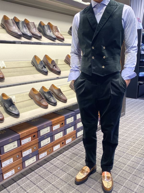 他と被らいないものをとにかくご希望されていたので生地感からも珍しいコーデュロイのグリーンでお仕立ていただきました!