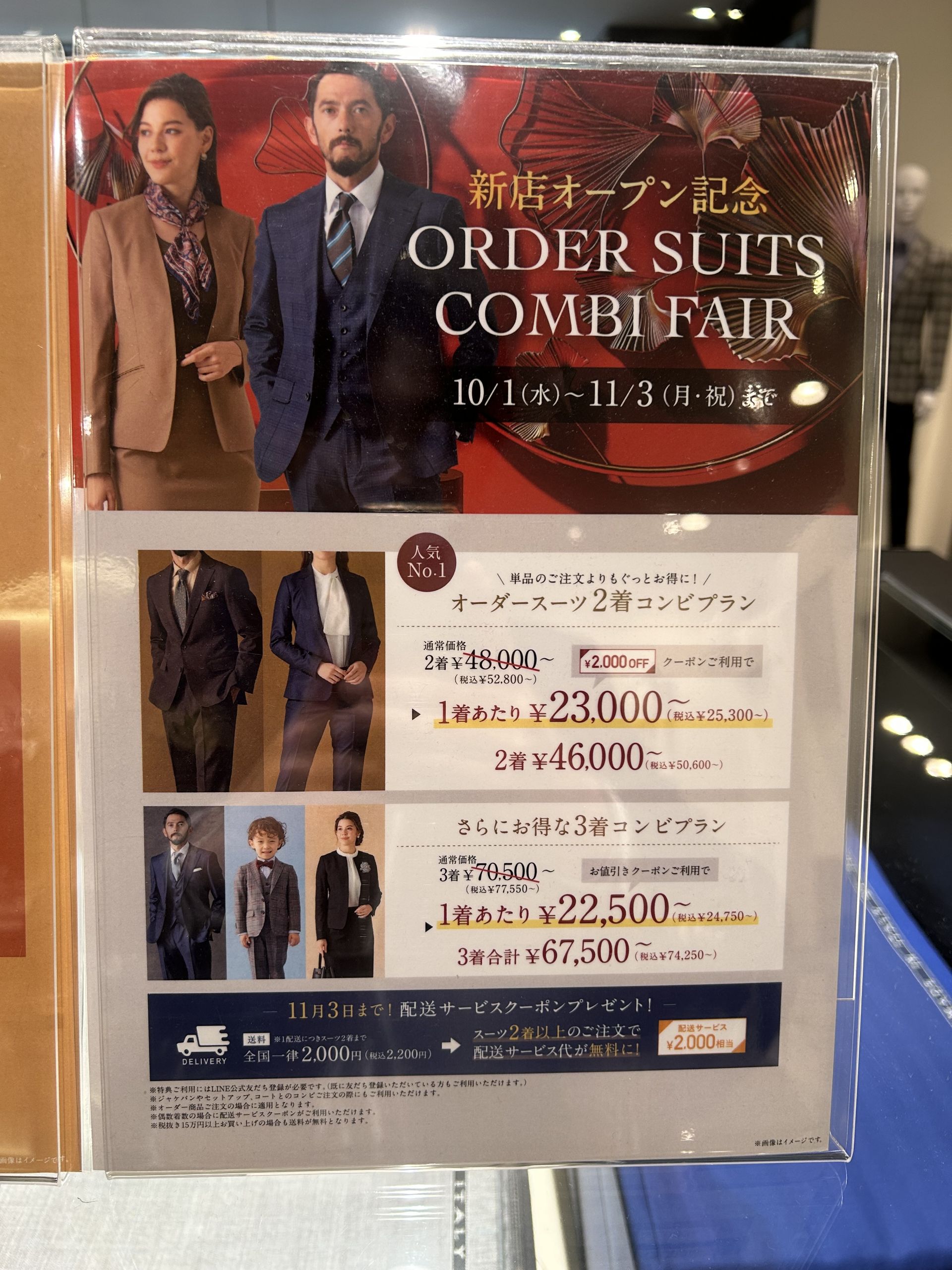 スーツ2着で2000円引き&配送サービスのクーポンも