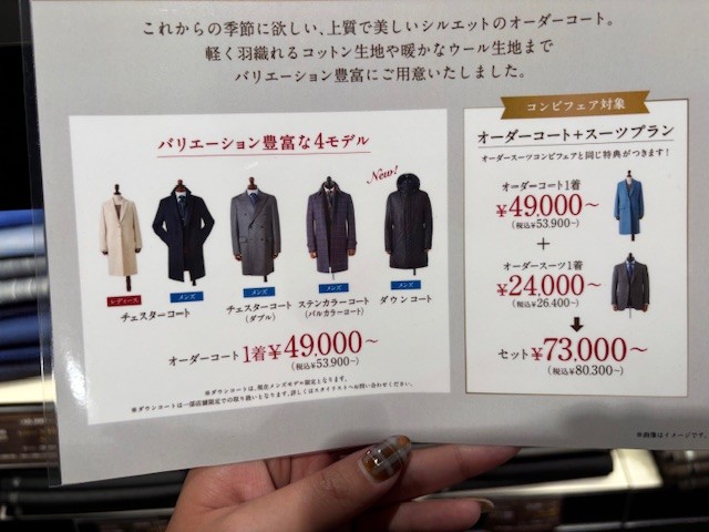 11/4からスーツ2着以上ご注文いただいた方対象で、