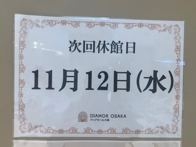 いつもディアモール大阪店をご利用いただき誠にありがとうございます。