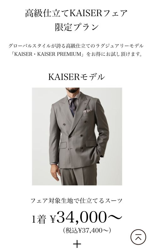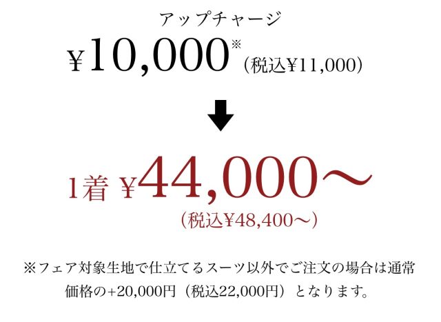 カイザーを作る工場に生地在庫があれば、通常2万円のお仕立て代が1万円引きされるお得なフェアも開催中です。