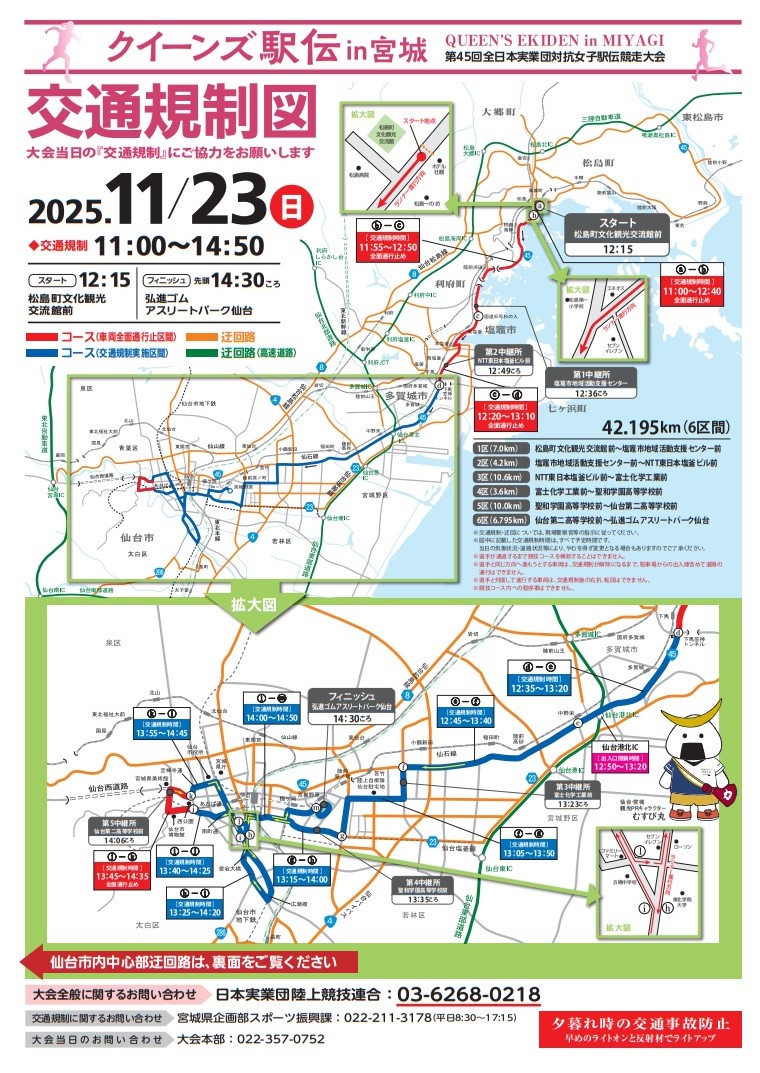 迂回路含む詳しい情報は、クイーンズ駅伝in宮城のホームページをご覧くださいませ。
