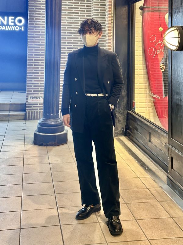 ダブルジャケットの貫禄をサイズ感とディテールの柔らかさで中和したつもりです。