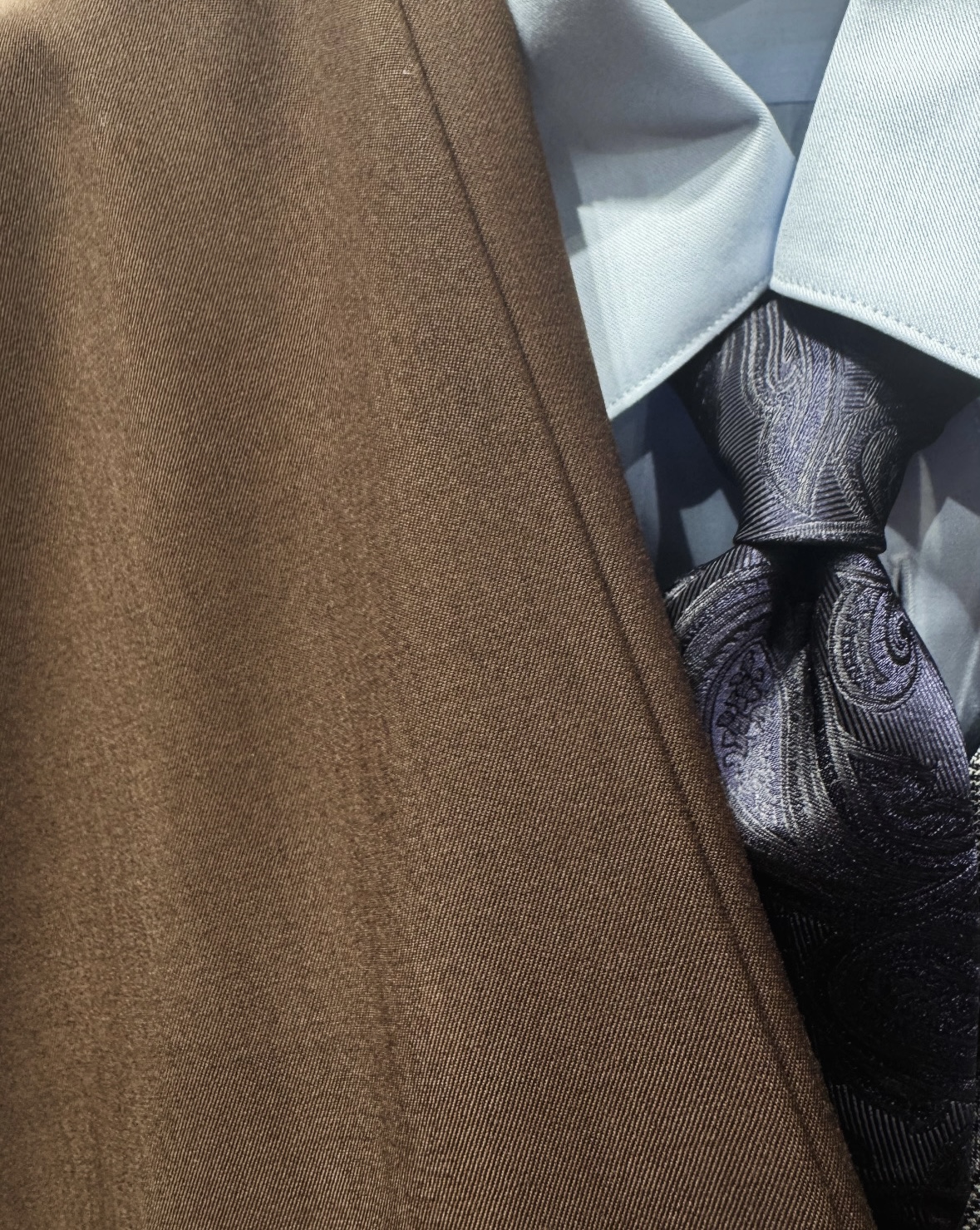 こだわったアイロンワークと、立体的なつくりによって綺麗なシルエットと肩回りの楽さを合わせた ”スーツを着る人のことを一番に考えたモデル” だと僕は思っています。