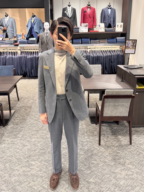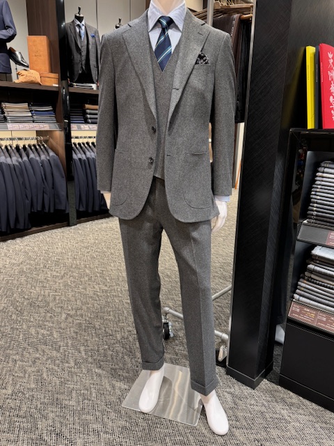 フランネルのスーツはニットやシャツ合わせやすいのがいいですね。