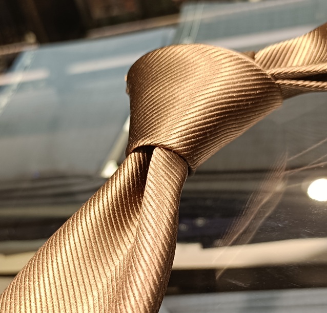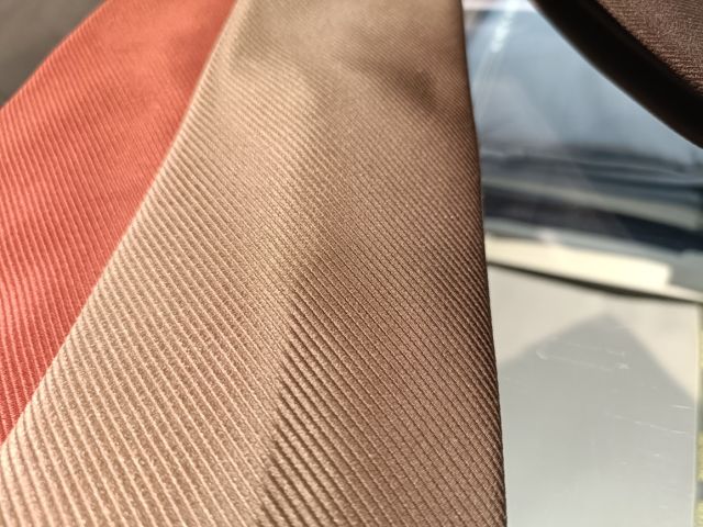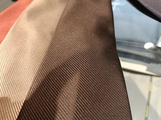 ライトグレーやブラウン系のスーツと合わせると、全体が明るく軽やかにまとまりますし、ダークトーンのスーツと合わせても似合います。あまりメジャーではないですが、個人的にかなり万能に使えるネクタイだと思います。