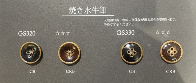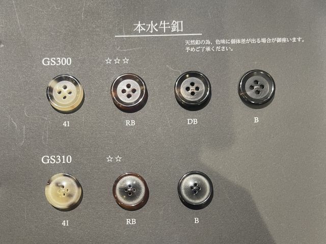 水牛ボタンは牛の角を原料としたボタンになります。
