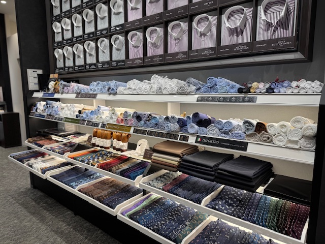 シャツもオーダーになるので、たくさん生地を見てお選びいただけます~