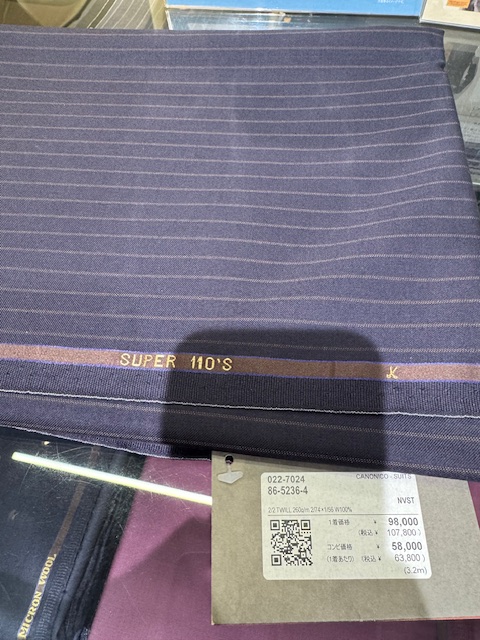ビシッとカッコよく決めたいお客様に、生地のご紹介を致します。