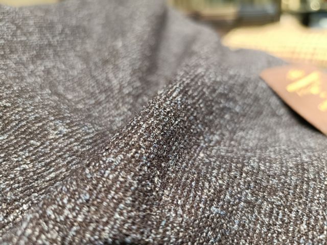 ナイロンは「軽さ」「強度」「耐摩耗性」「光沢感」を持つ繊維です。これを少量混ぜることで、本来は耐久性が高くない繊細な原毛やふっくらとした織り、特殊な立体感を持つ生地に耐久性を与えられます。つまり、ナイロンは主役ではなく“縁の下の力持ち”。生地の美しさを長持ちさせるために欠かせない存在なのです。