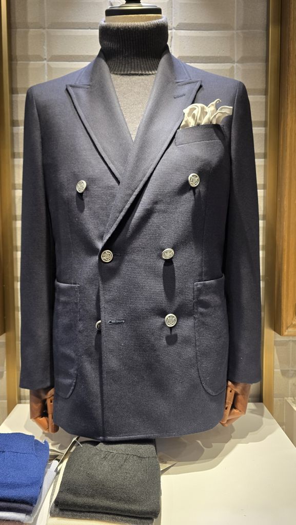 既製品では出せない“肩の収まり”や“胸の立体感”。あなたの体に合わせて作ることで、ネイビーの美しさがより際立ちます。