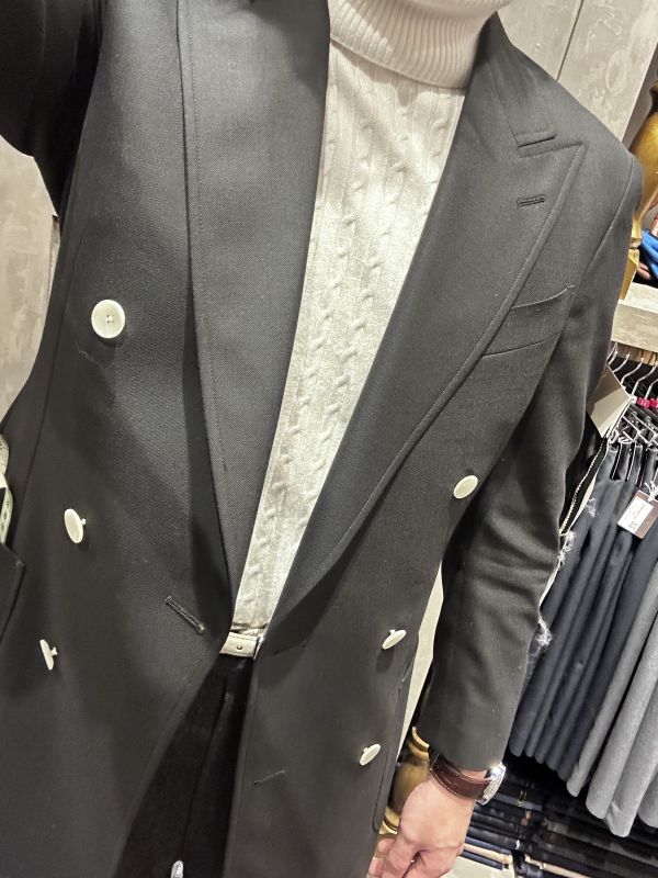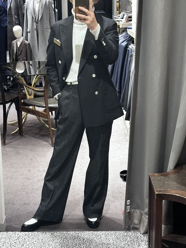 先日仕立てたBLKのダブルジャケットと合わせたコーデです。