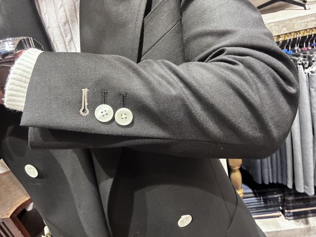 釦も敢えて明るい貝調釦で、着丈も普段より長めにしました。