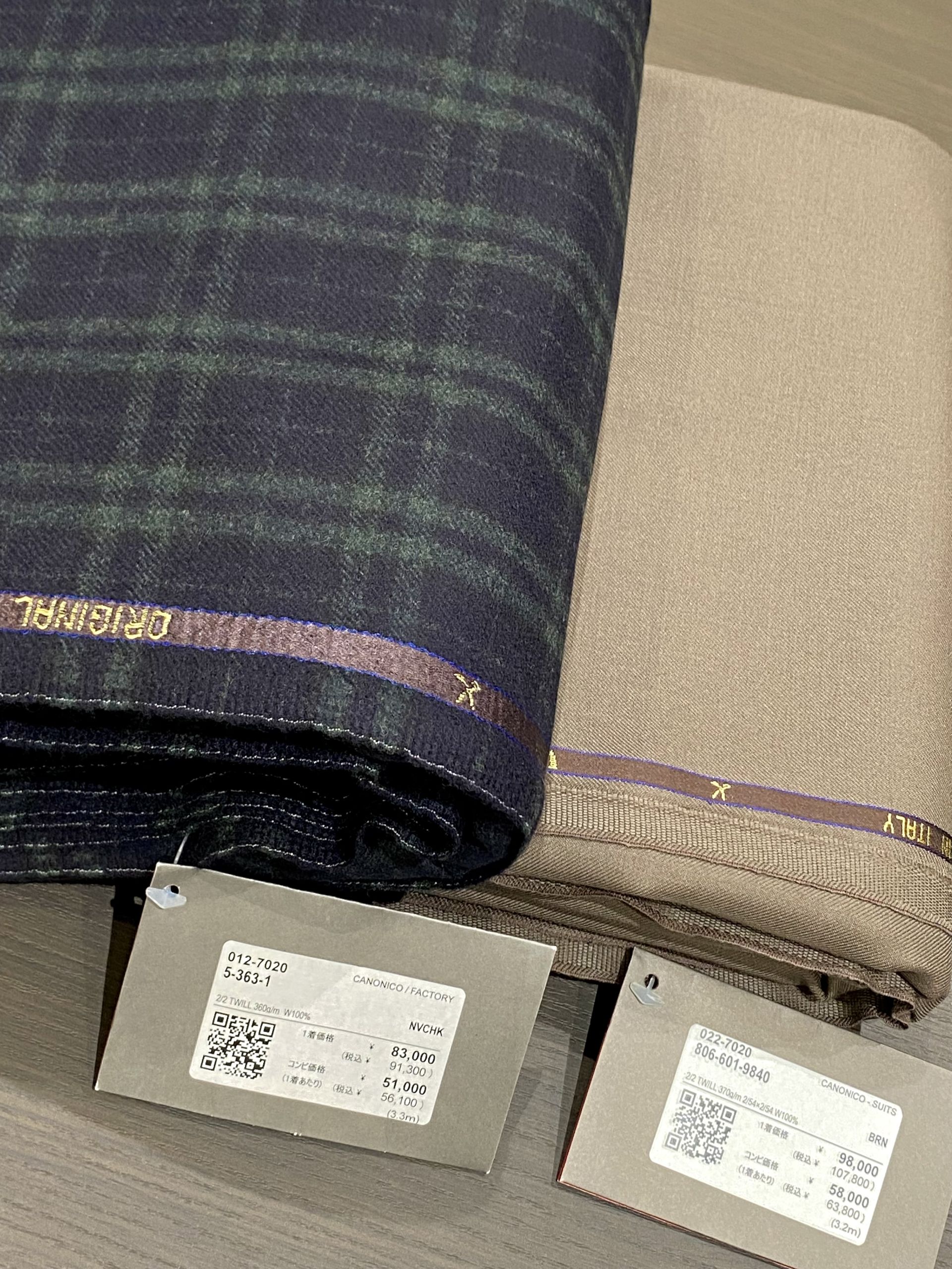 ちなみに目付は260g/mあたりから厚みのある生地になってきて数字が大きくなるごとに生地秋冬向けへ寄っていきます。370g/mは重ためな生地で仕立て映えすること間違いなしです!!