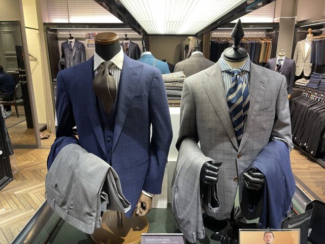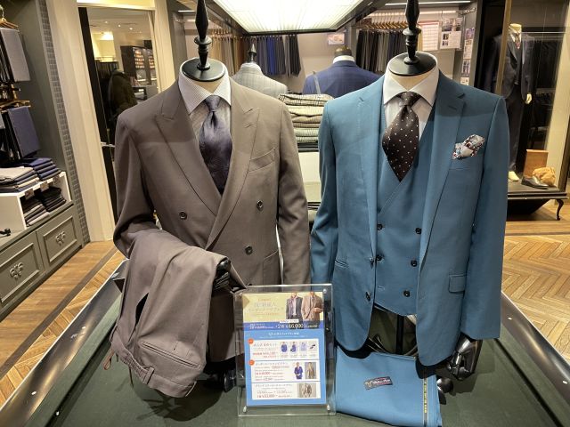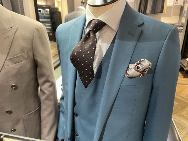 今回の投稿では、鮮やかなグリーンのスーツとライトブラウンのスーツをディスプレイしてみました。