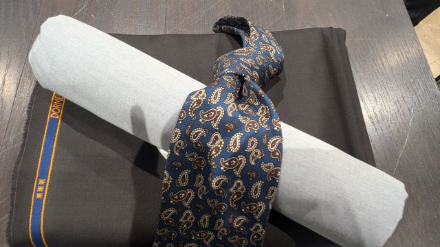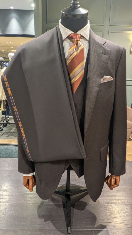 ブラウンのサンプルスーツと比べて頂けますと色感、艶感の