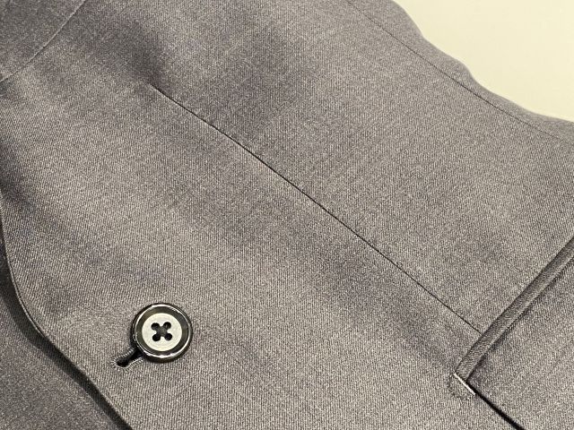 本来胸ポケットの下から脇ポケットまでを一直線に伸びるダーツが裾まで贅沢に縫われていますのでより上品に立体的に着用していただけます。
