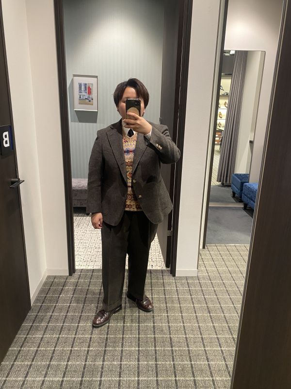 目付が500g/mなので重く秋冬にならないと着れないスーツですが色味も生地感も断トツで一番好きなので今年も楽しみにしていました。
