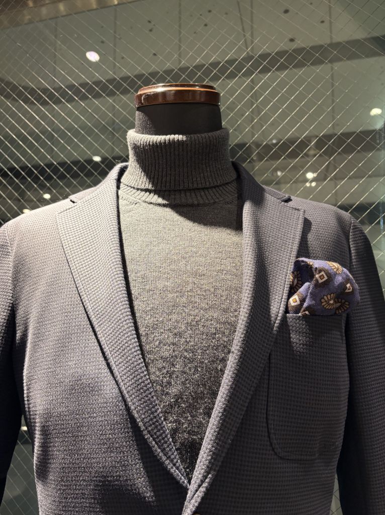 スーツの下に着てももたつかず、オンオフどちらにも使いやすいのが魅力です!