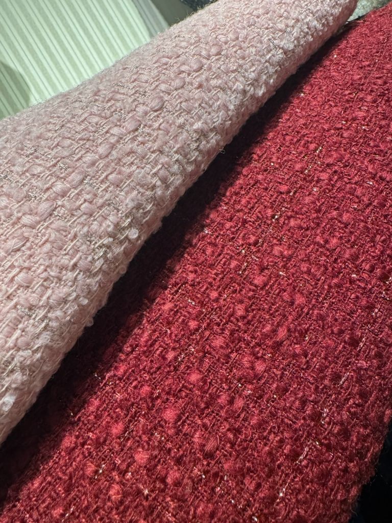 ファンシーツイードとは、モール糸やラメ糸など様々な装飾糸を織り込んだ