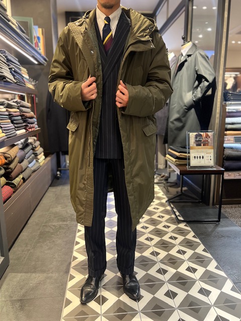 スーツと同じく、お客様ひとりひとりのご体型や好みに合ったサイズでコートを着ることができるので、